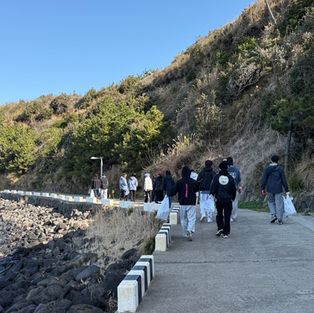 With cool morning air and clear skies, we hiked up Jeoji Oreum together. Many new members joined us, making the hike even more special. After enjoying the stunning view from the summit observatory, we continued along Olle Trail 14, picking up trash along the way. ♻️