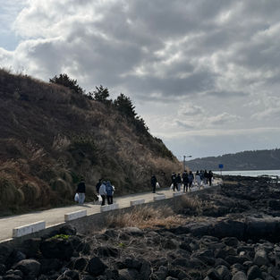 We hiked Saebyeol Oreum, one of Jeju’s most scenic volcanic cones. At this time of year, the hill is covered with beautiful silver grass (Eulalia) swaying in the wind — a truly stunning sight! 💨 It’s a short but steep trail, and a must-visit spot if you’re exploring Jeju’s west side.